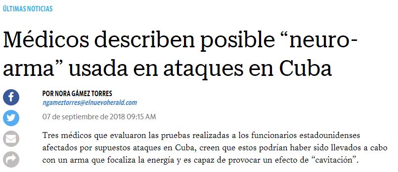 La última de las absurdas y nada comprobadas “posibilidades” para encontrar respuesta, “pruebas” de algo que nunca ocurrió, es la declaración a la revista National Defense de James Giordano, cuyo pedigrí es ser experto en neurotecnología y su uso en el campo militar —los verdaderos médicos y expertos en salud desistieron de tanta incertidumbre—, aludiendo a que se trata de “neuro-armas probablemente de tipo biológicas, químicas que dirigen la energía”.