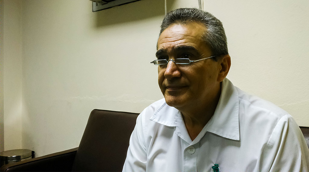 Al salir de la entrega de guardia, el Dr.C. Armando Elías González Rivera, jefe de la Unidad de Cuidados Intensivos del Hospital General Calixto García Íñiguez, postergó por unos minutos su recorrido habitual por la sala de los enfermos para hablarnos sobre los servicios que brindan los profesionales de la salud al bienestar de la población y a la economía del país.