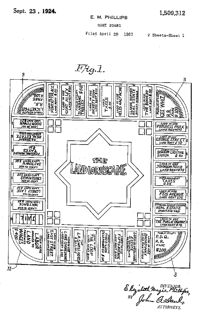 En EE. UU, ya a inicios del siglo XX, cualquiera podía darse cuenta del peligro que podían suponer los grandes monopolios, cada vez más prolíficos en un mundo que se dirigía inexorablemente hacia el capitalismo. Fue sobre lo que, en 1904, Elisabeth Magie trató de explicar, alertando a la gente de una forma lúdica; el juego del Monopoly. Desafortunadamente nunca gozó de los beneficios que le podría haber reportado el gran éxito de su creación. En la década de los 30 Charles Darrow modificó su aspecto, cambió algunas de sus normas y lo bautizó por primera vez con el nombre de Monopoly.