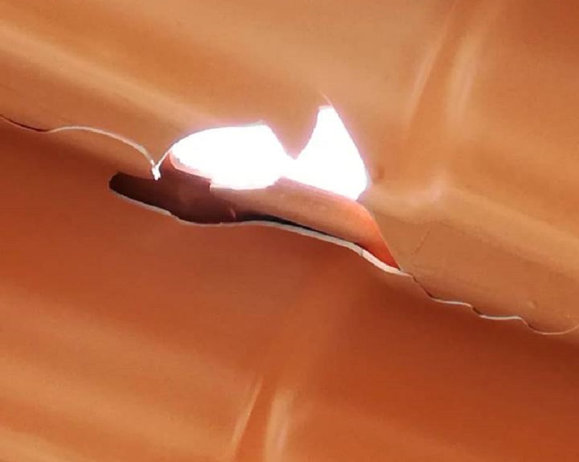 Agujero realizado en el techo del centro Mural de la Prehistoria provocado por el impacto de las piedras negras (Foto: Tomada de Facebook).