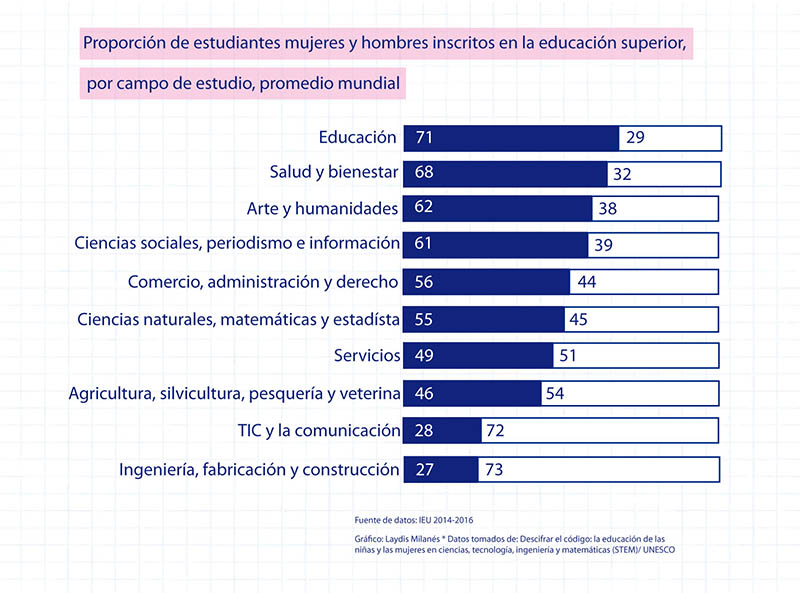 Dentro de la población femenina en la educación superior a nivel mundial, solo alrededor del 30% elige disciplinas de las ciencias, la tecnología, la ingeniería y las matemáticas, conocidas como STEM por sus siglas en inglés.