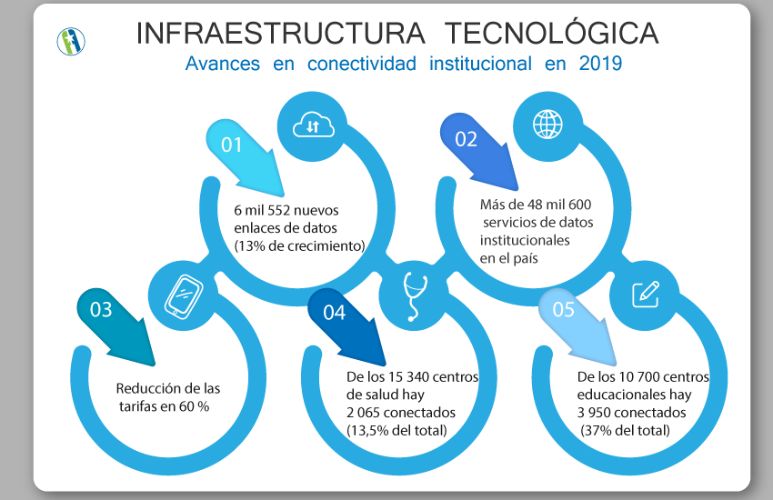Asimismo, concluida la etapa de Presencia y en proceso de implementación la de interacción del Gobierno Electrónico, más de 30 municipios poseen portales del ciudadano y 130 tienen contratado su desarrollo; según datos del Ministerio de Comunicaciones de 2019.