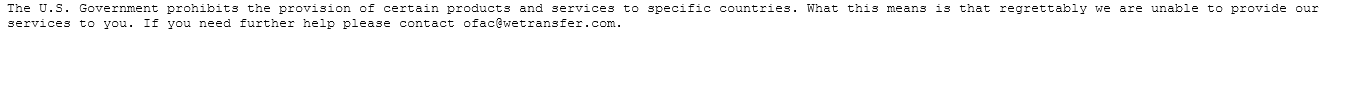 El mensaje no me deja continuar, me molesta incluso. Llevo par de años utilizando WeTransfer en mi trabajo para compartir los videos o archivos pesados con facilidad y en poco tiempo. Una maravilla. Sin embargo, allí están esas letras impertinentes en la pantalla que quieren decirme algo: “El gobierno de los EE. UU. prohíbe el suministro de ciertos productos y servicios a países específicos. Lo que significa que, lamentablemente, no podemos brindarle nuestros servicios”.