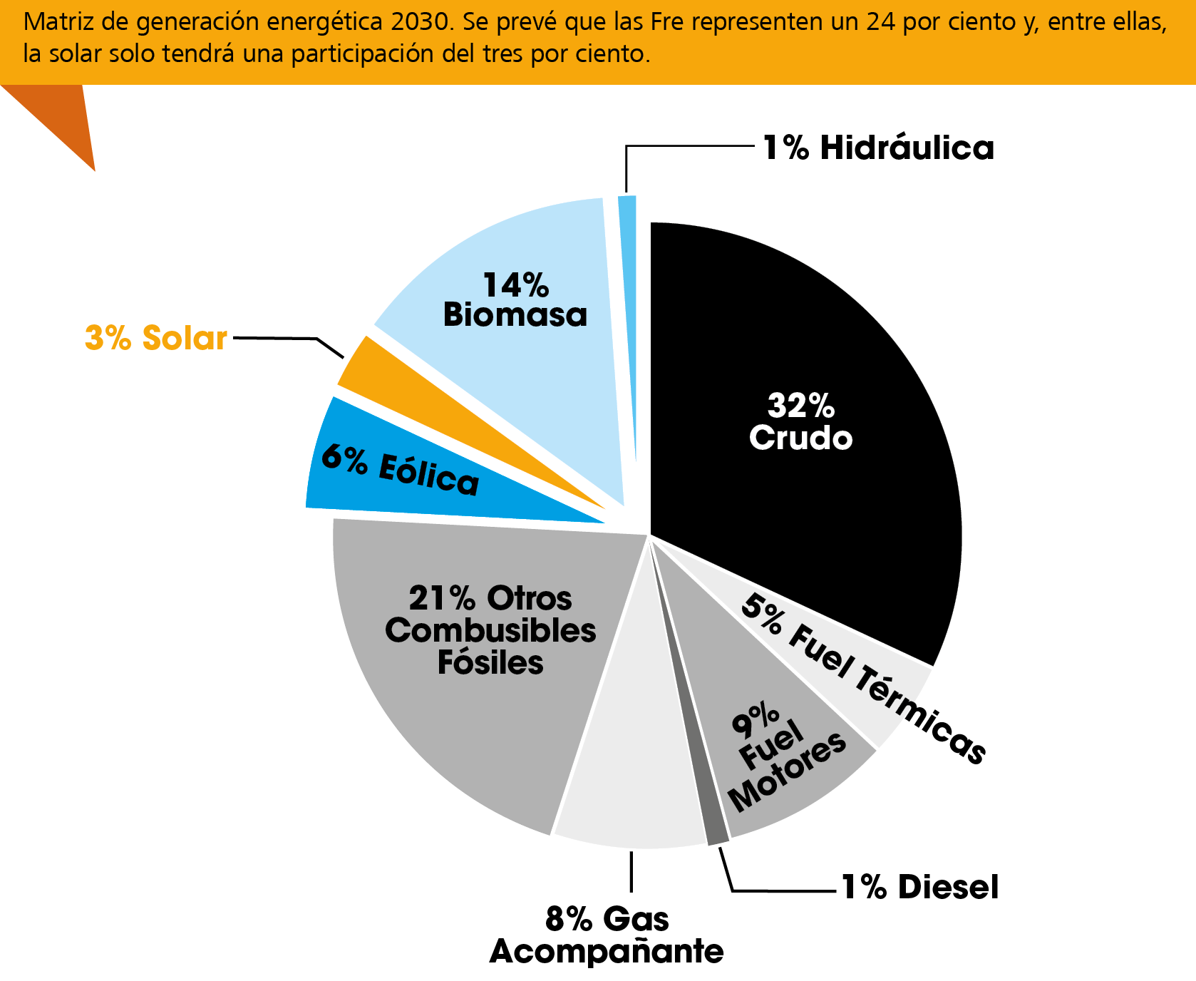 Muy interesante tu artículo, pero en el gráfico sobre la matriz energética aparece la generada con fuel (Combustible en idioma inglés) y deduzco que trataste de decir Fuel Oil (Eso en español se llama Petróleo Combustible Pesado ó PCP) pues también se usan otros tipos de combustibles que no son el PCP.