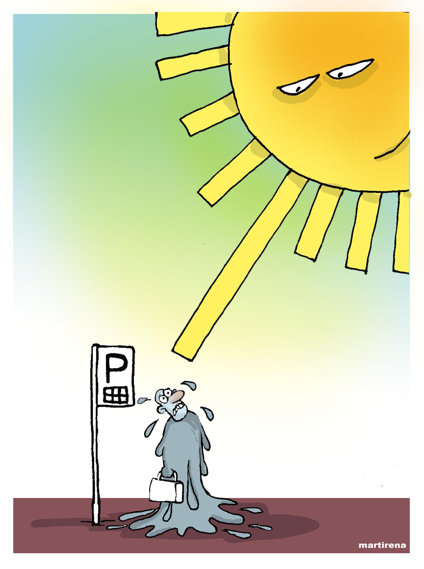 Sientes de golpe esa sensación de derretimiento en la que se te une el cerebro con el cráneo y deseas que esté nublado para siempre. Piensas cómo es posible que el sol esté a 149.597.870.700 metros de ti y parezca que vas a morir fusionada con el asfalto.