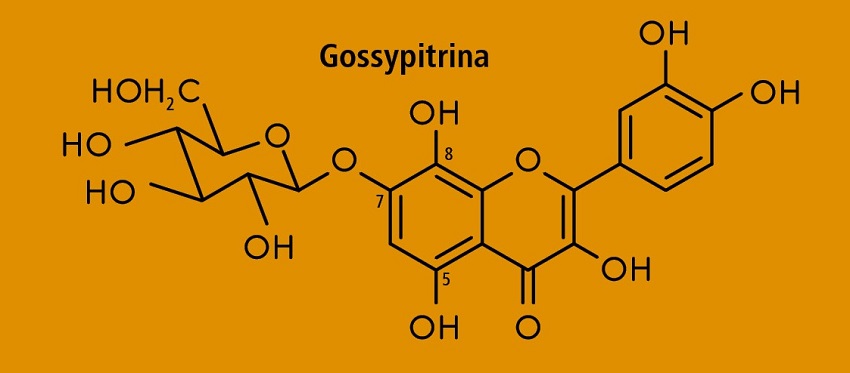 Después de tener los extractos totales se obtiene la gossypitrina. Aquí su estructura química.