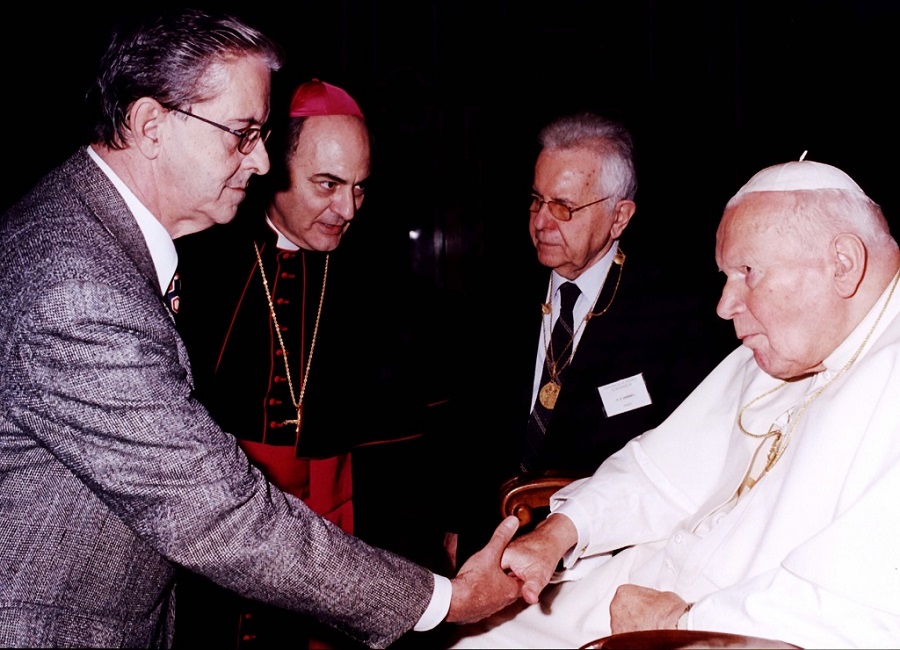 El Dr. Ismael Clark mientras es saludado por el papa Juan Pablo II.