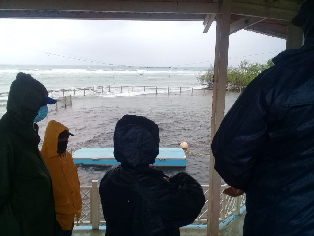 En Niquero, se reportaron fuertes vientos con rachas de hasta 85 kilómetros por hora con lluvias y olas que han llegado hasta los tres metros.