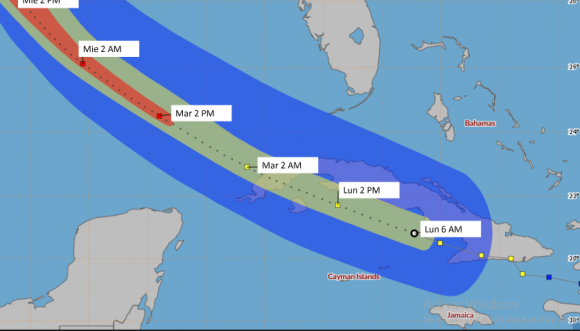 Cono de trayectoria previsto (Foto: Insmet)