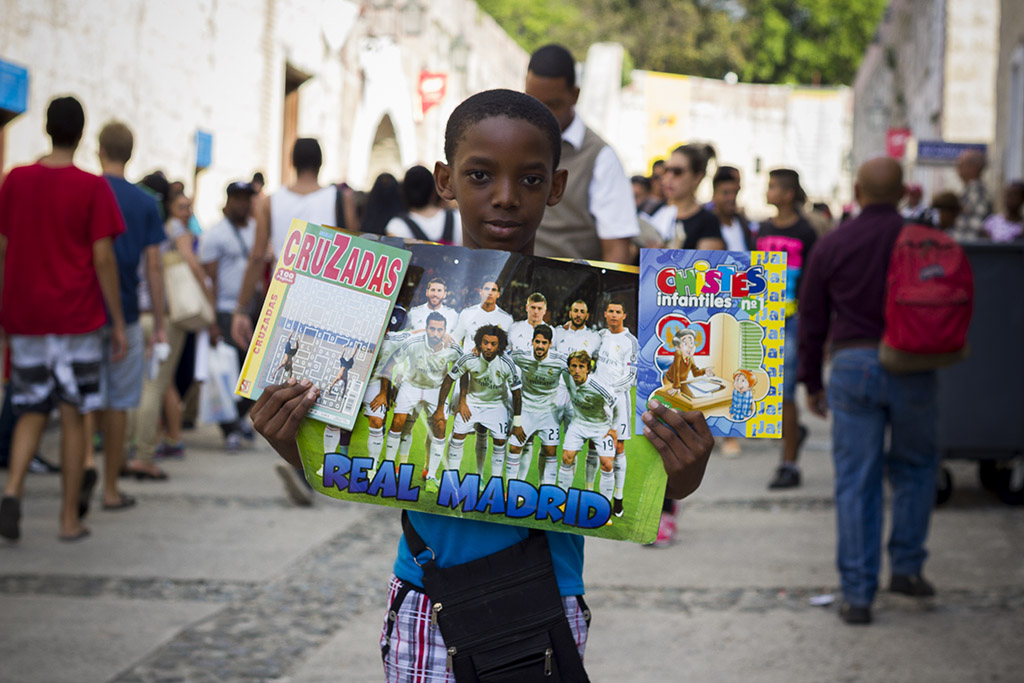 El pequeño Daniel asegura que se marcha muy satisfecho de la Feria del Libro: pudo encontrar un libro de chistes infantiles y dos afiches, uno del Real Madrid y otro del Barcelona. Viene todos los años a la Feria y tiene un pequeño librero donde guarda lo que compra.