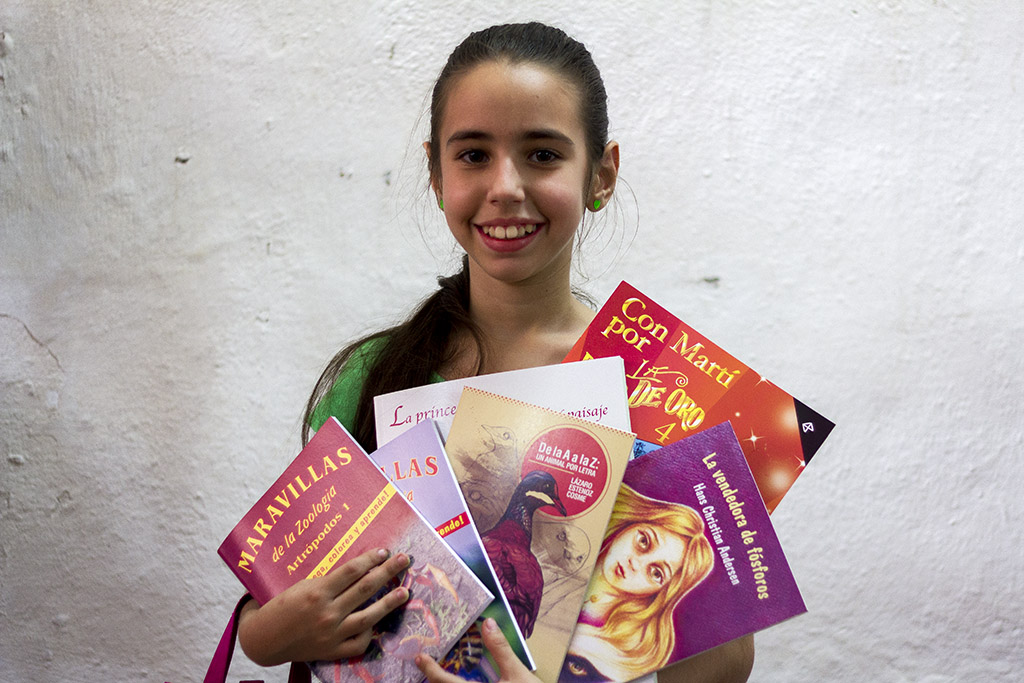 “Estamos buscando libros que sean didácticos, que tengan alguna enseñanza y les sirvan para sus estudios. El sábado encontramos varias obras de todos los patriotas cubanos, los mapas de la guerra de liberación, así como libros sobre las aves que habitan en Cuba. A ella le gustan mucho los libros sobre Cuba”.