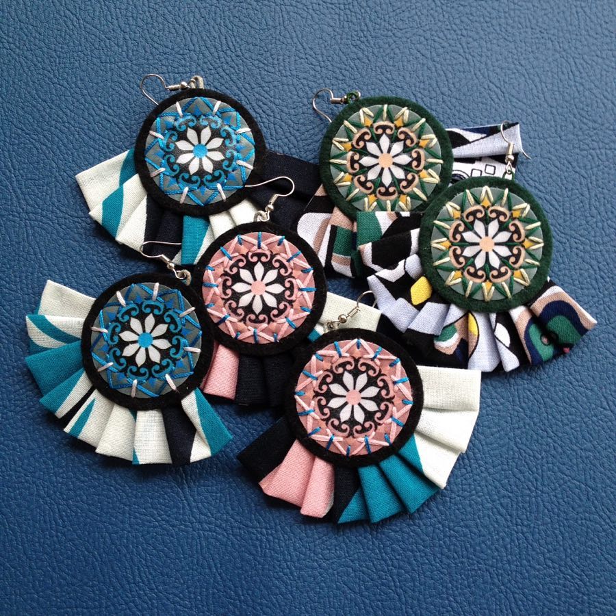 Aretes con coloridos diseños de Katy Ocaña, bordados a mano, hermosos y livianos. (Foto: Perfil de Facebook de la autora)
