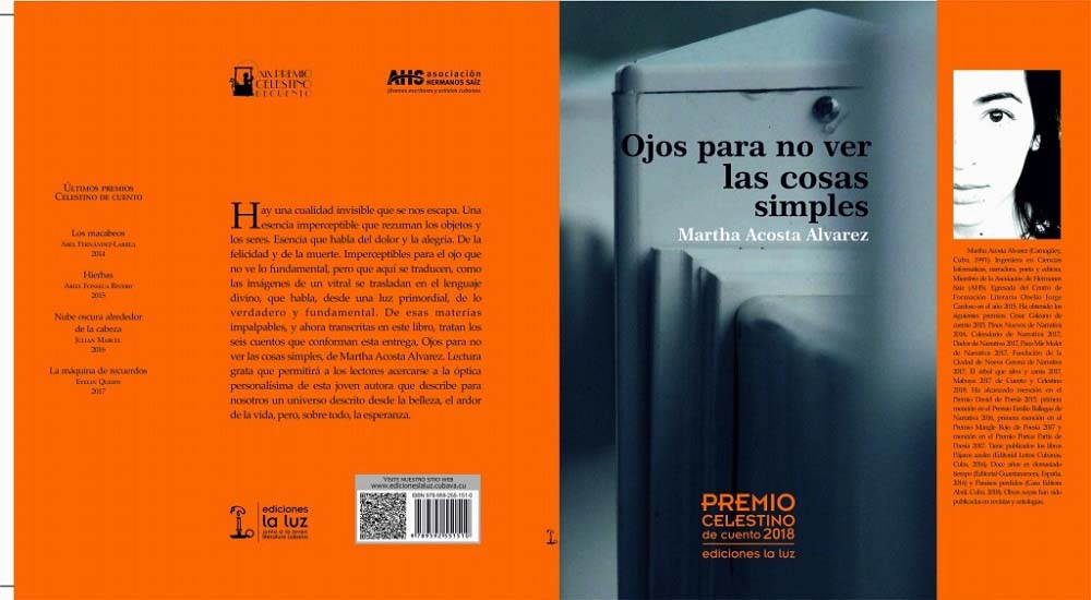 Ojos para no ver las cosas simples, Premio Celestino de Cuento, 2018, Ediciones La Luz, Holguín (Imagen cortesía de la entrevistada)