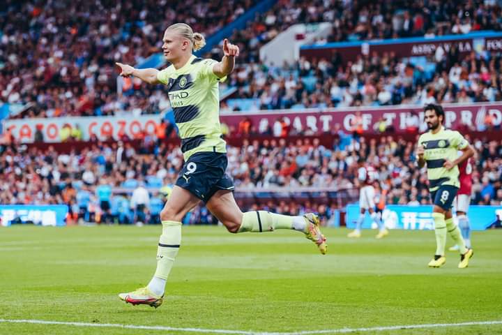 Erling Haaland anotó el único gol del Manchester City en el empate a uno ante el Aston Vila en la sexta fecha de la Premier League.(Tomadas del perfil de Facebook del Manchester City)