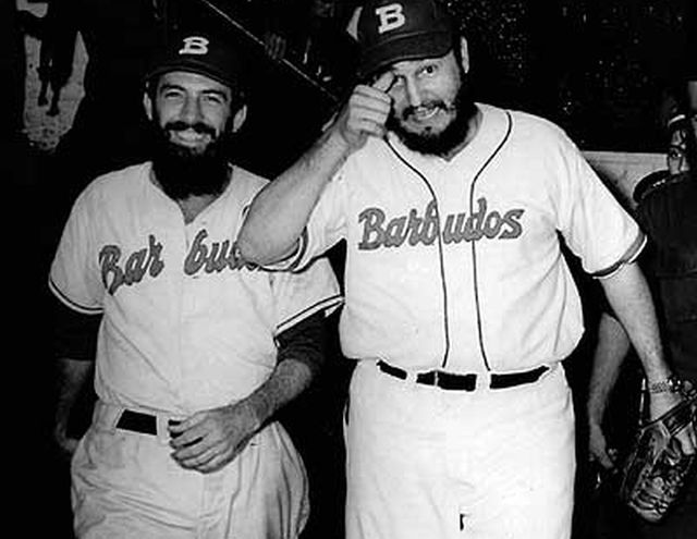 Fidel y Camilo con el traje de los Barbudos, en el célebre juego. (Tomada de Cubadebate)