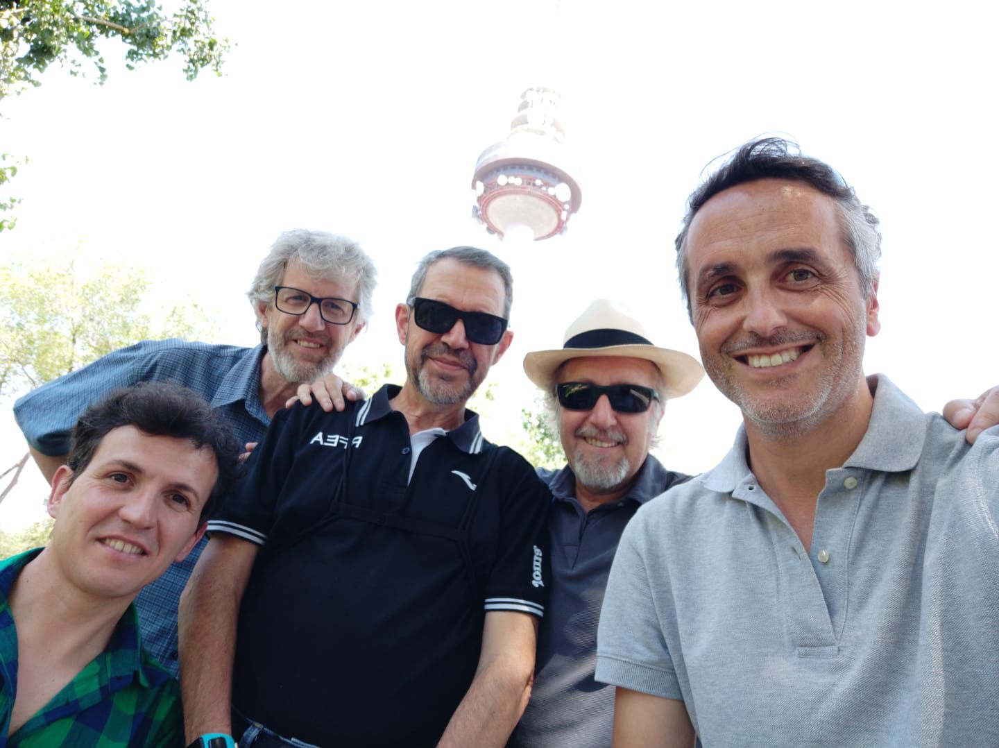 Cebrian con sus compañeros de TVE: Juan Carlos Higuero, Amat Carceller y los realizadores Pablo y Javier. (Foto: Cortesía del entrevistado)