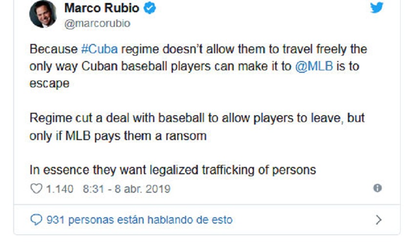 La Federación Cubana de Béisbol denuncia la utilización con fines políticos de argumentos insostenibles que lograron deshacer el Acuerdo, recibido en su momento con entusiasmo por nuestros atletas, técnicos y aficionados, conocedores de que abriría las puertas a una inserción segura y ordenada en la MLB.