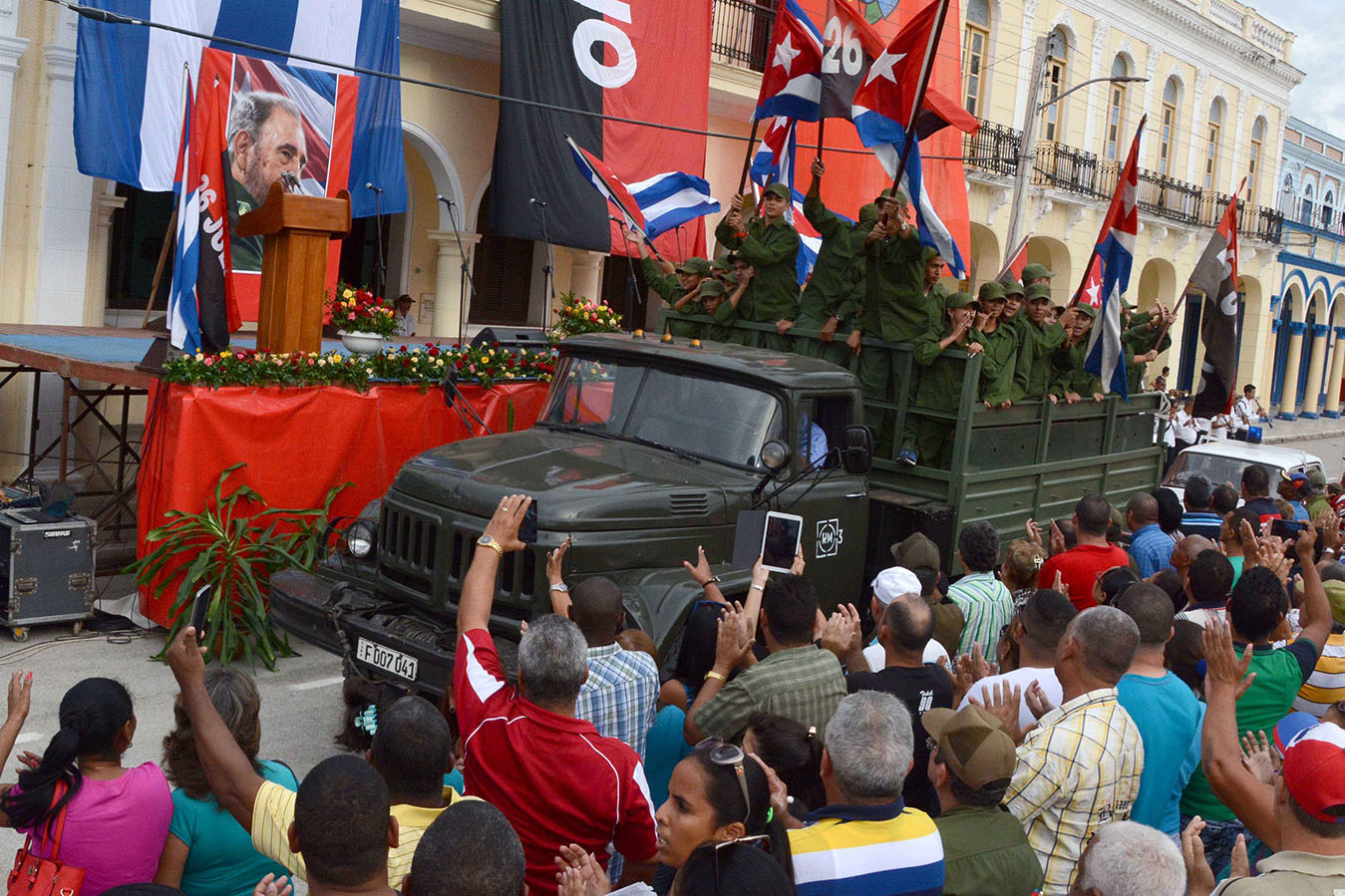 Instantes de la rememoración de la entrada de Fidel con la Caravana de la Libertad a la ciudad espirituana, en Sancti Spíritus, Cuba, el 6 de enero de 2018.