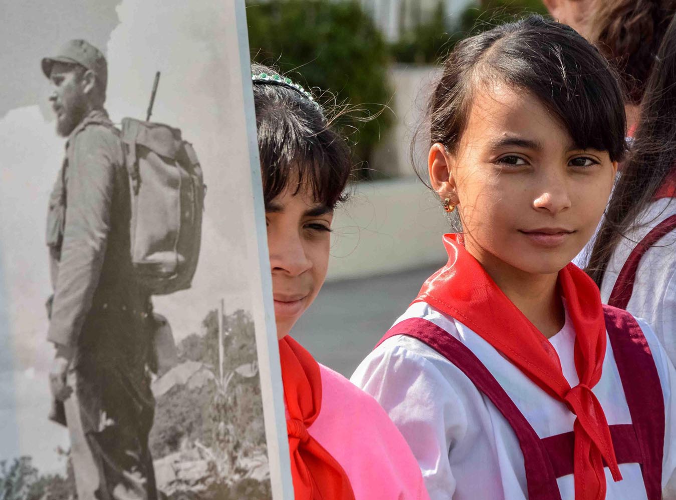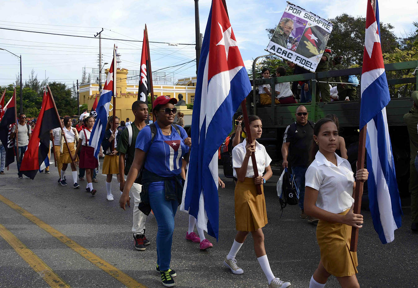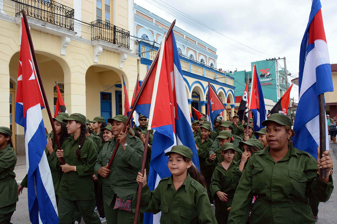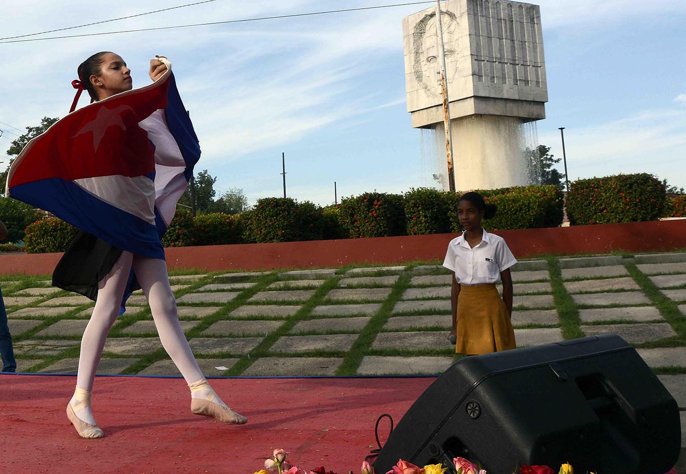 Jóvenes conmemoran la entrada de la Caravana de la Libertad a la ciudad de Bayamo, en el aniversario 59 de ese hecho histórico, en la provincia Granma, Cuba, el 2 de enero de 2018.