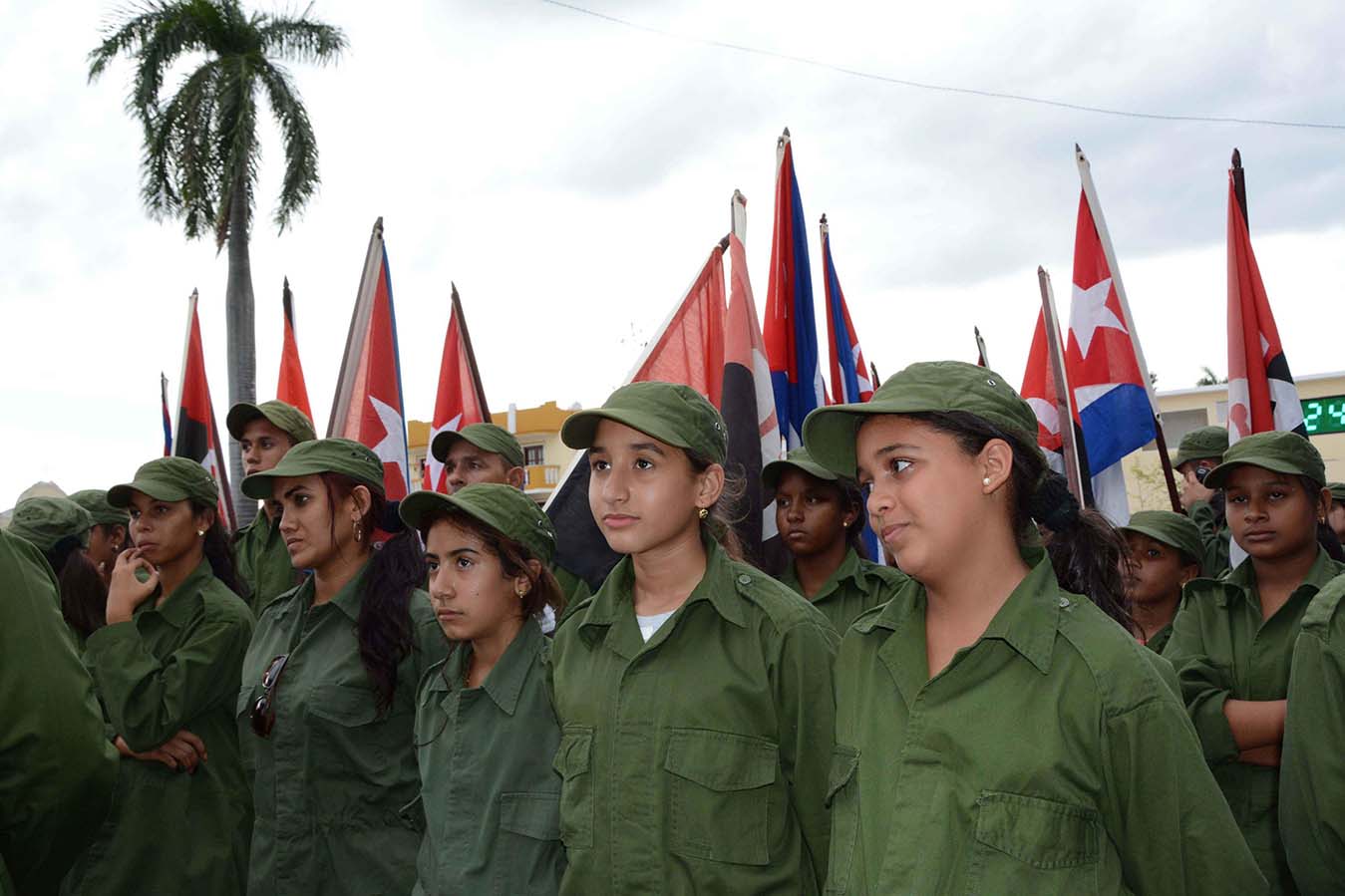 Jóvenes destacados de la provincia rememoran la Caravana de la Libertad, a su paso por Las Tunas, en el aniversario 59 del Triunfo de la Revolución cubana, el 4 de enero de 2018.