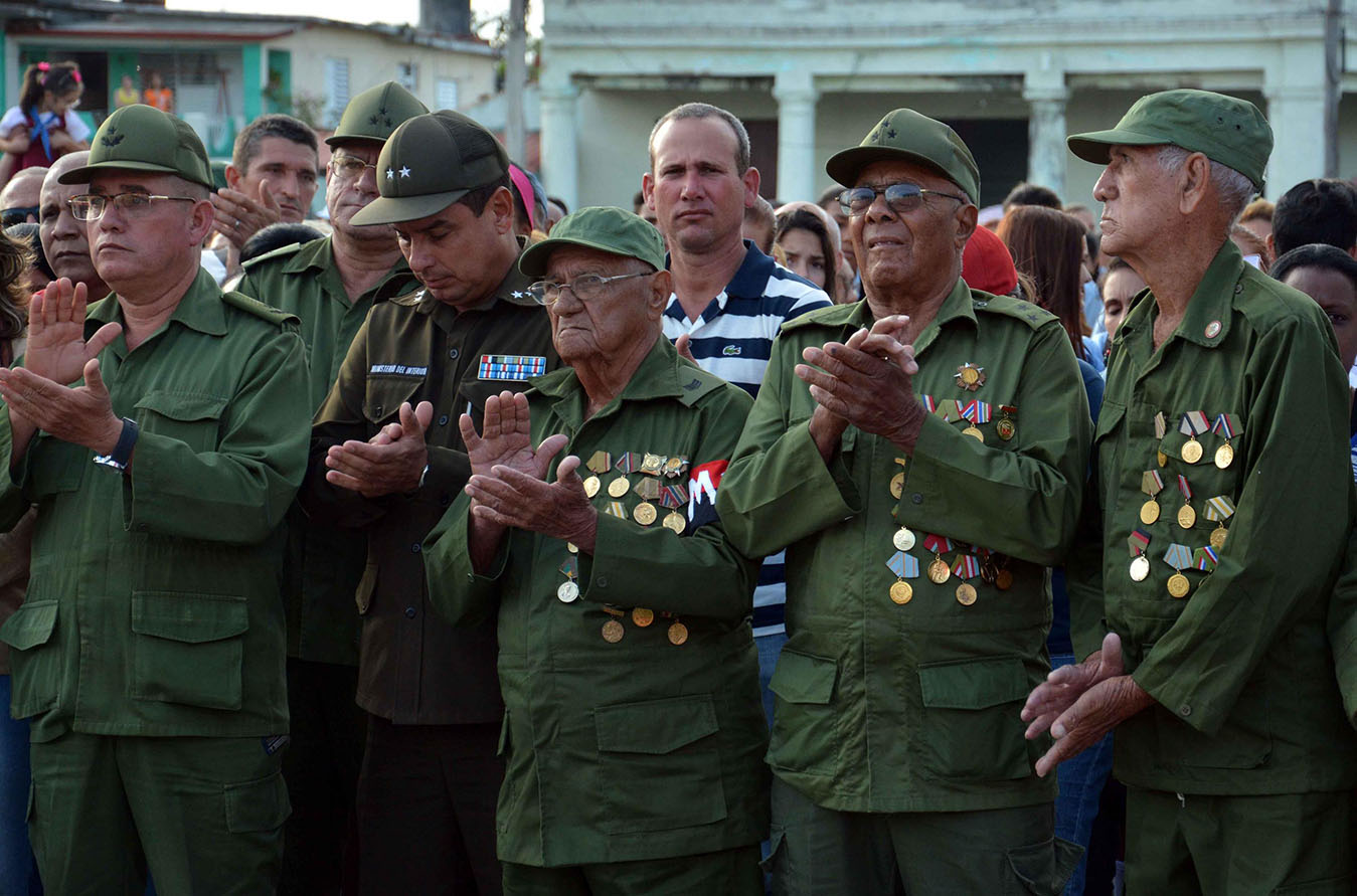 Combatientes de la Revolución, integrantes de las columnas invasoras, pioneros, estudiantes y trabajadores, rememoran la entrada triunfal de la Caravana de la Libertad en el Aniversario 59 del Triunfo de la Revolución cubana, en la ciudad de Santa Clara.
