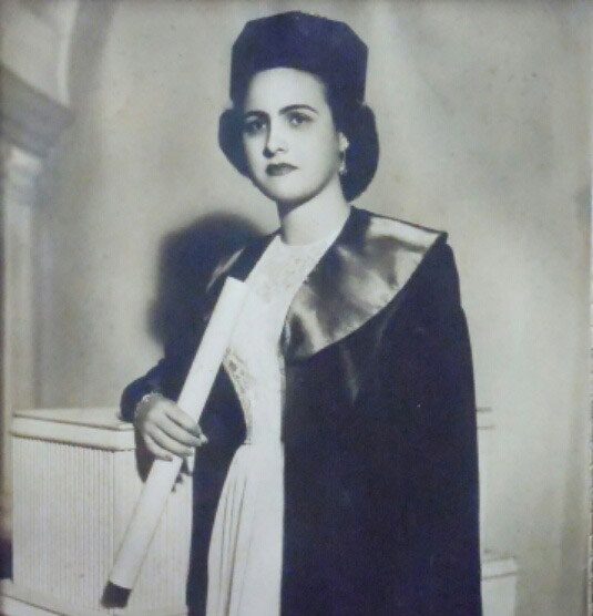 La abogada novel con su toga de graduación, la misma que ansió haberle podido pres-tar al líder revolucionario, si no hubiera sido de talla chica. (Fotocopia: Martha Vecino Ulloa)