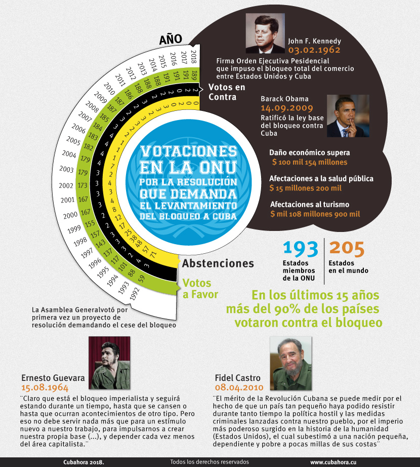 Desde aquella iniciación en el año 1992 hasta la actualidad, el Proyecto de Resolución contra el bloqueo ha sido presentado y propuesto a votación en todas las celebraciones de la ONU, alcanzando con el decursar del tiempo mayor apoyo de la comunidad internacional.