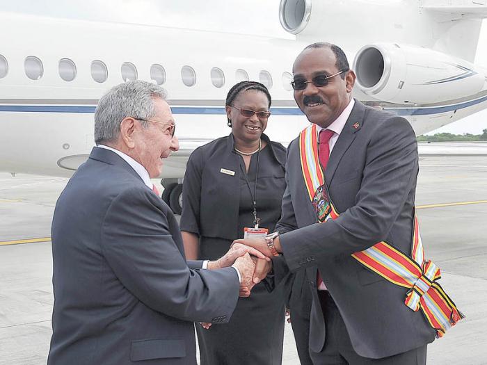 El General de Ejército Raúl Castro Ruz, Presidente de los Consejos de Estado y de Ministros, fue recibido este jueves por el primer ministro de Antigua y Barbuda, Gaston Browne. El mandatario cubano, además de participar en la VI Cumbre CARICOM, realizará una visita oficial a ese país y asistirá a la Tercera Sesión de la Asamblea de la Organización de Estados del Caribe Oriental (OECO).
