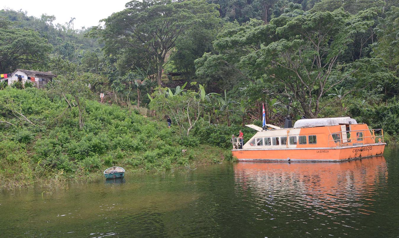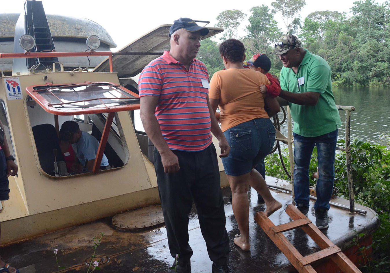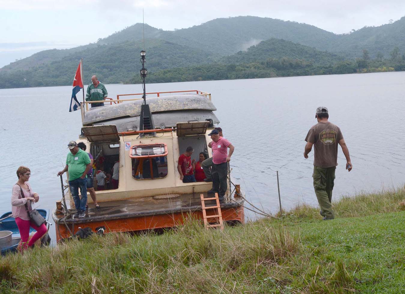 Los campesinos de la zona montañosa llegaron hasta los márgenes del Lago Hanabanilla para ejercer su derecho al voto en estas elecciones a delegado municipales. Allí, en la embarcación, las autoridades electorales disponen de diferentes medios de comunicación con la Comisión Electoral Municipal, entre ellos la telefonía fija alternativa.
