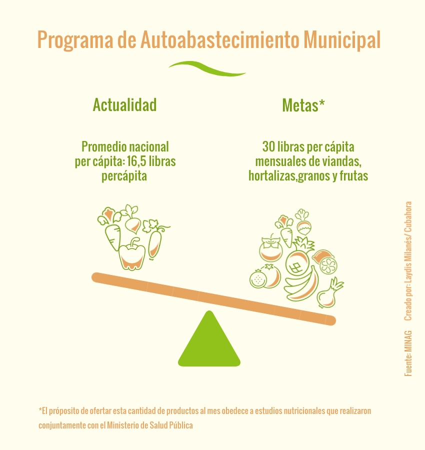 La jefa nacional del programa, Elizabeth Peña Turruellas, declaró a Granma que se ha enfatizado en incrementar la estabilidad de la producción de hortalizas y condimentos frescos, avanzar en la producción de semillas en las fincas municipales, y alcanzar mayor eficacia en el funcionamiento de las unidades empresariales de base-granjas.