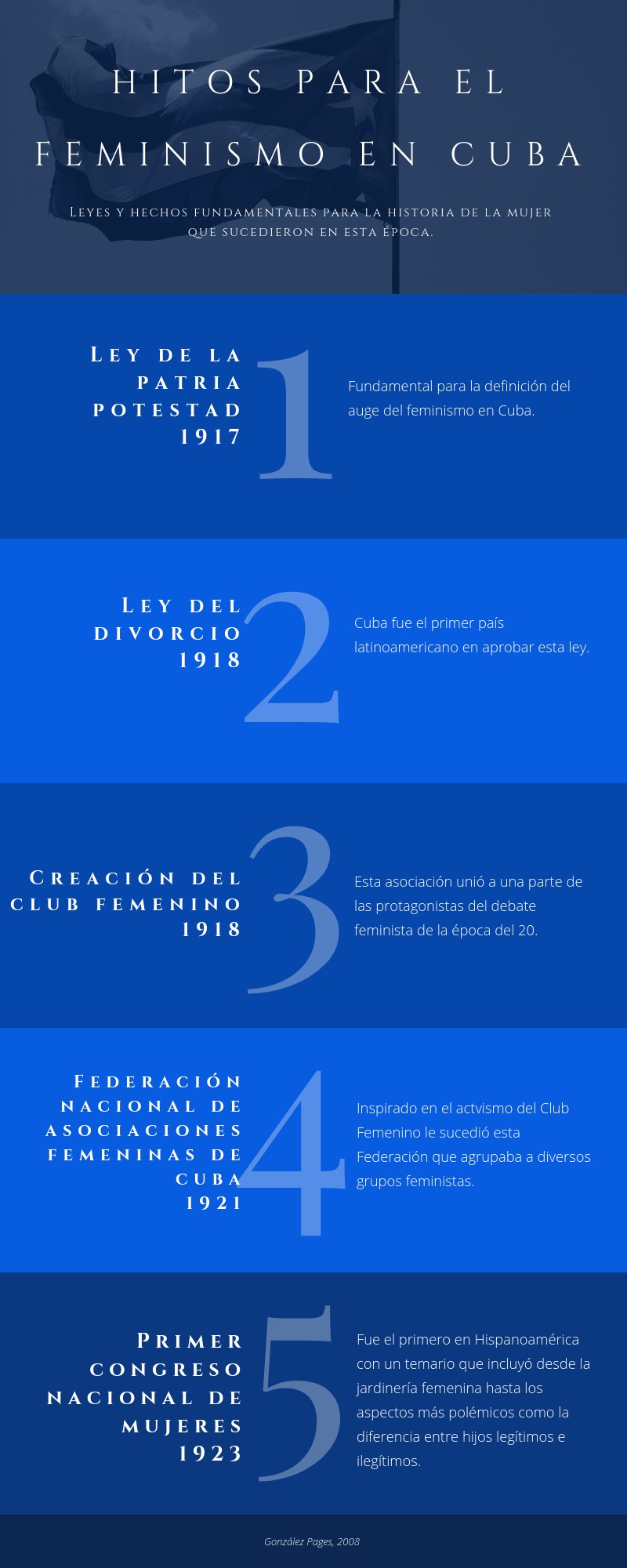 “Este fue el comienzo de una república por la cual también habían luchado las mujeres, quienes no conformes con la visión androcentrista de sus primeros mandatarios, hicieron reclamos de puestos públicos, sufragio, indemnizaciones y otros tipos de demandas en cientos de misivas que trajeron un aumento de expectativas sobre la temática femenina, haciendo crecer considerablemente la bibliografía escrita sobre temas relacionados con el feminismo, legislación y sufragio. La construcción de un ideario nacionalista cubano al estilo norteamericano a través de la instrucción pública, utilizó a la fuerza femenina como futura portadora de la pedagogía de su ideal” (González Pagés, 2008).