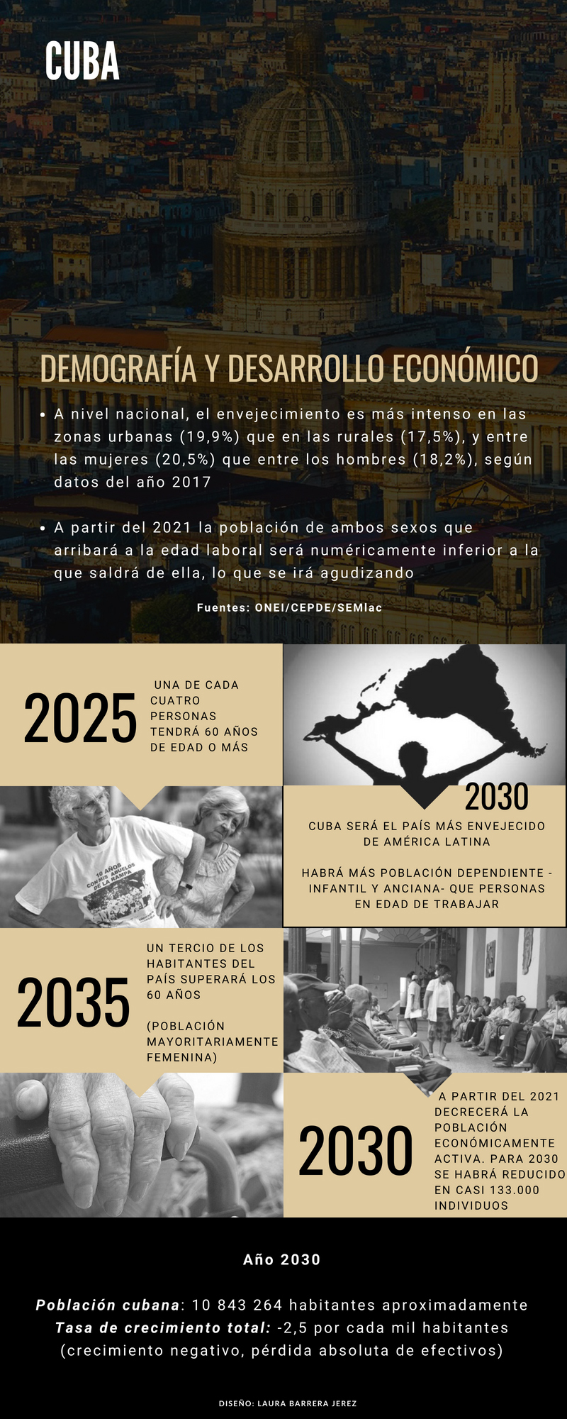 Los estudios actuales alertan sobre el impacto que tiene (y sobre todo que tendrá) el envejecimiento poblacional sobre la economía cubana. Las conclusiones de los especialistas, las estadísticas y los análisis de esos datos, definitivamente, no son muy alentadores. A esto se suman los índices de fecundidad, el comportamiento de las migraciones externas, las cifras de morbilidad y mortalidad… Nuestra población decrece de manera absoluta.