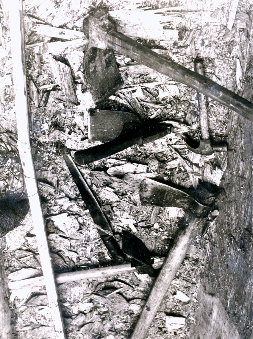 Se utilizan el hacha, el cuchillo y el machete como instrumentos para labrar y tallar las canoas. (Foto. Cortesía del Autor).