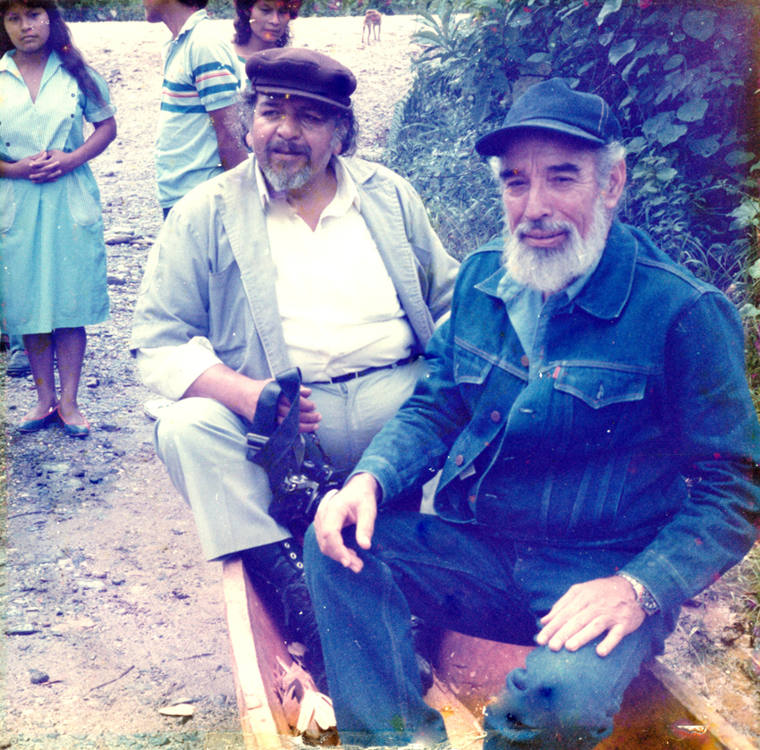 En la foto arriba, Nuñez Jímenez observa la construcción de una piragua auxiliar para la expedición por el indio quichua Gabriel Cerda y en la de abajo comparte con su amigo Lenin Ortiz.(Foto. Cortesía del Autor).
