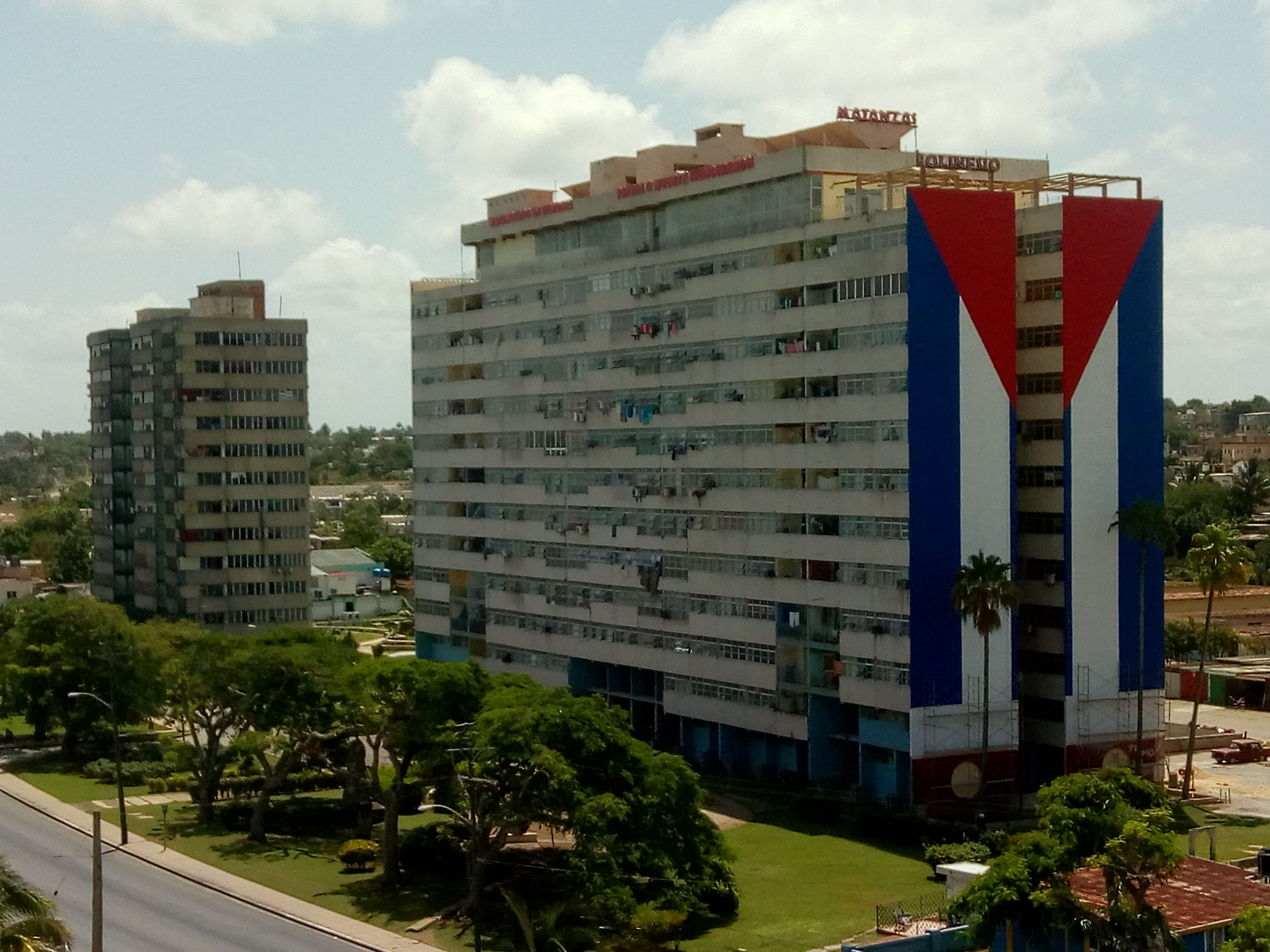 Justo al frente, en el primero de los trece plantas construidos en Matanzas, allá por la década de los años 80, la bandera del 26 de Julio con los grados de Comandante recreados enaltecen la vista de uno de los sitios más bellos de Matanzas. A sus pies, casi bañados por las aguas saladas de la bahía yumurina, el paisaje de la Sierra recuerda nuestras luchas patrias.
