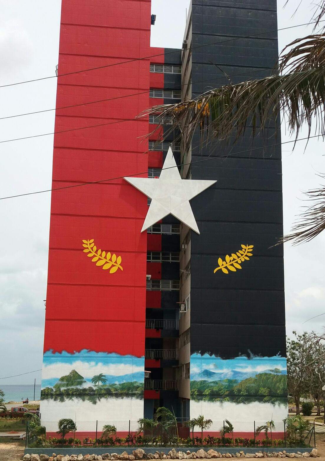 “Los vecinos están muy contentos porque ya este no es el edificio del Polinesio, sino de la bandera cubana”, apunta Argelio García Pérez, representante del artista “especialmente porque este es el mural de la bandera nacional más grande que existe”.