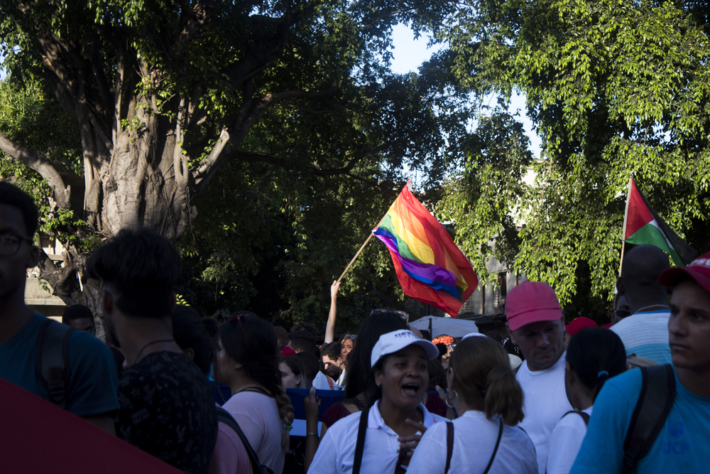 Las banderas ondeaban al ritmo de la música que acompañaba la marcha. Foto: Laura Alonso Hernández