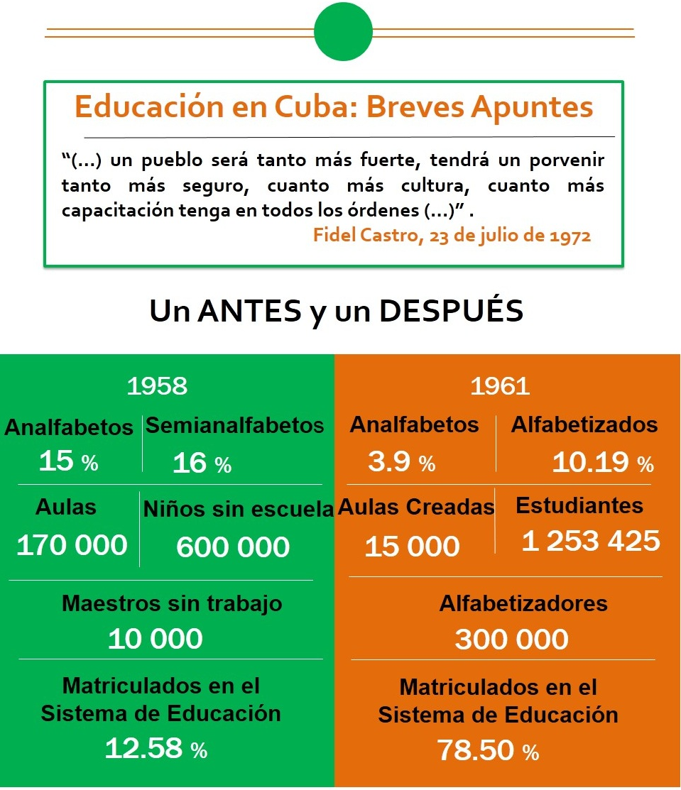 Cuba es el país de América Latina con más alto índice de alfabetización, fue declarado primer territorio libre de analfabetismo en América.