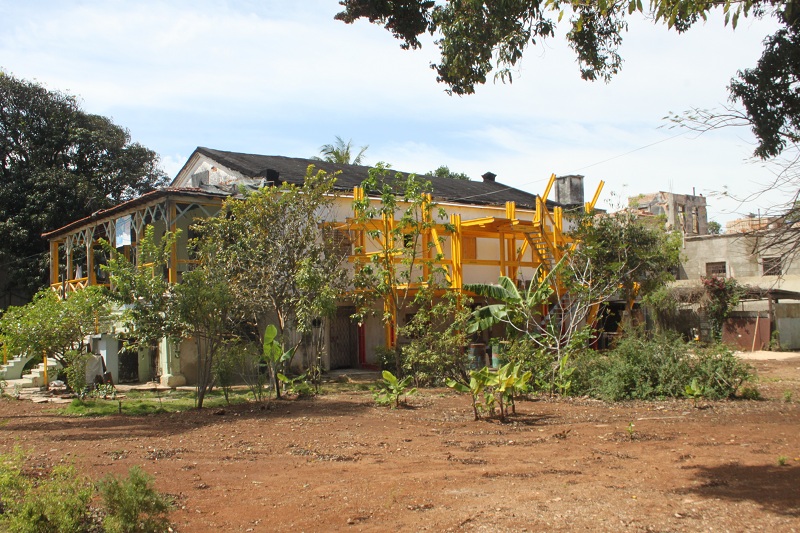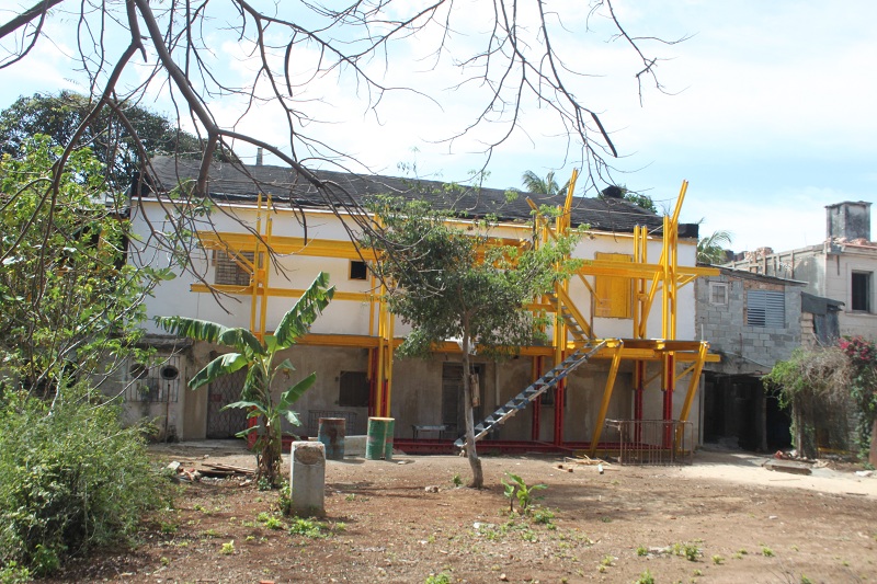 Ese andamio constituye una pieza clave en el proceso de reconstrucción de la casa. (Maya Quiroga/Cubahora)