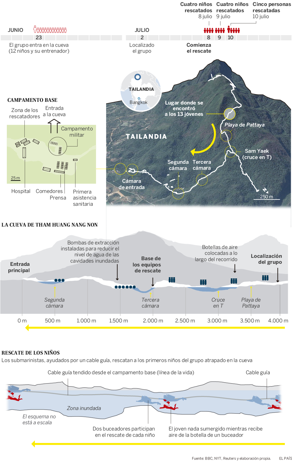 El pasado 23 de junio, 12 niños tailandeses, de entre 11 y 16 años, pertenecientes al equipo de fútbol “Jabalíes Salvajes” y su entrenador de 25 años, quedaron atrapados en las profundidades del complejo de cuevas Tham Luang, producto de la inundación provocada por las intensas lluvias que por este período suelen ocurrir en esa zona.