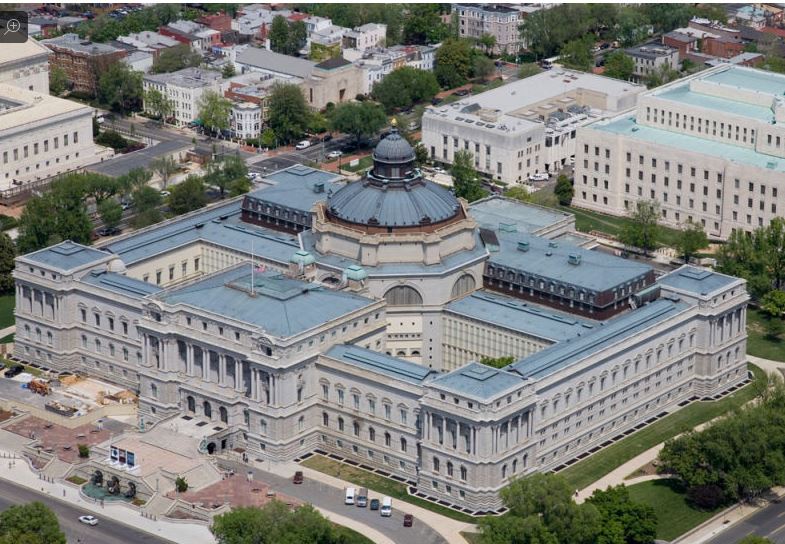 El edificio más antiguo, el Thomas Jefferson, uno de los tres complejos que forman la Biblioteca está situado en la Colina del Capitolio